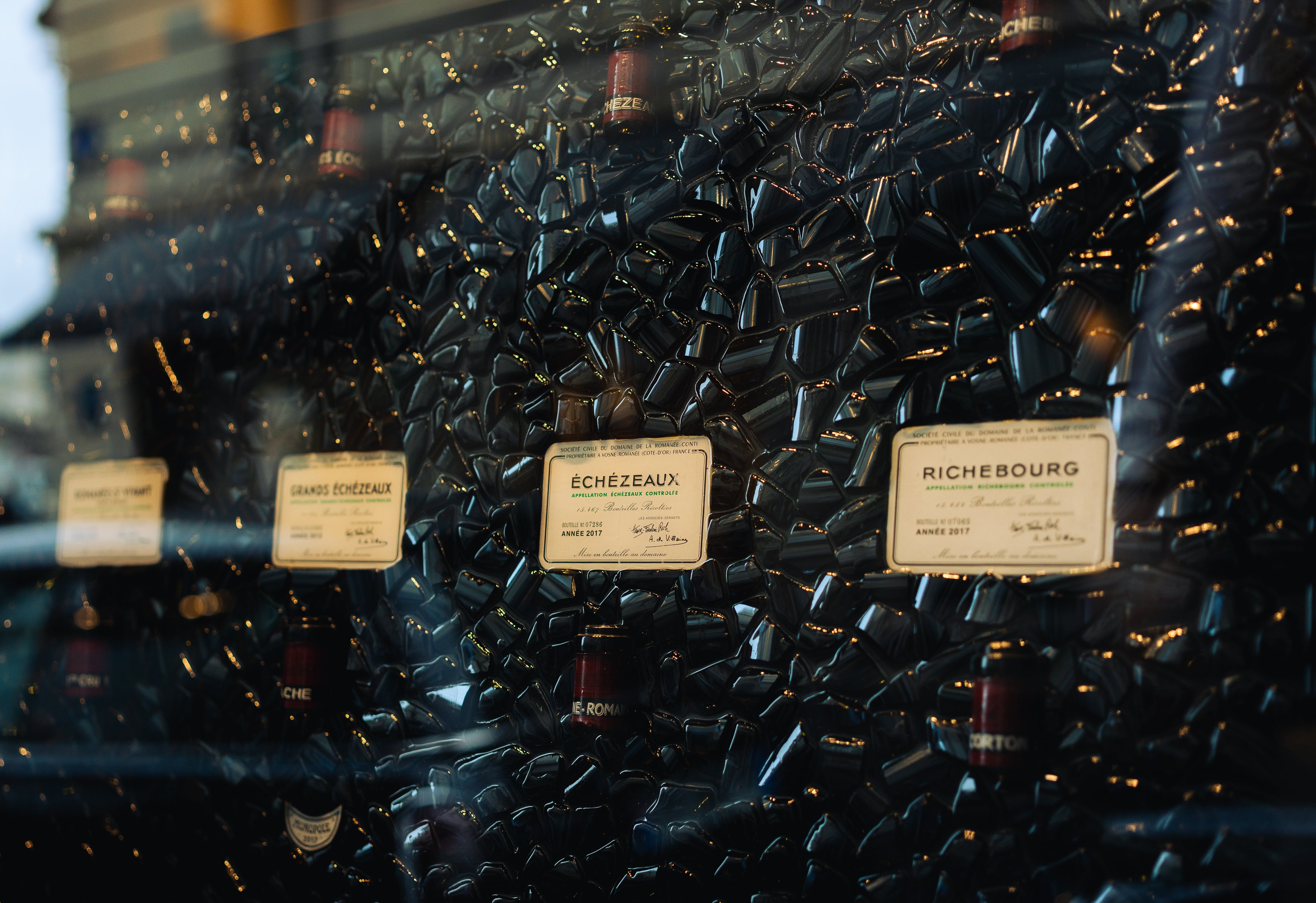 Chaque composition, réalisée à la main en Bourgogne, met en scène fragments de verre, étiquettes et éléments de packaging, conservant l’âme du cru d’origine.